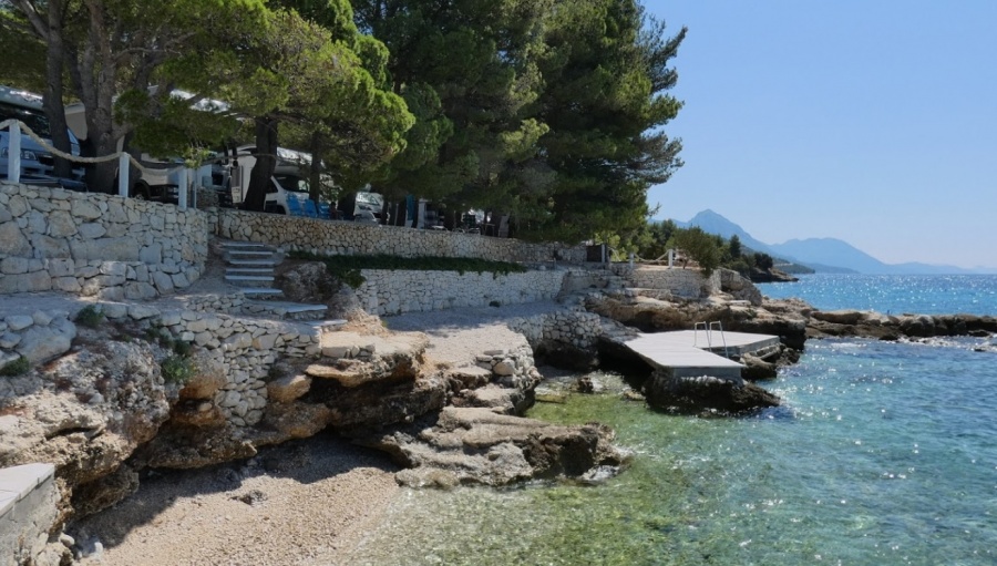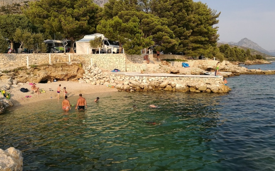 Kamp u blizini obale zapravo ima uređenu plažu, koju posjećuju isključivo gosti kampa. Može se do nekih dijelova doći i morem, ili drugim manjim putovima u neposrednoj blizini, ali je zapravo glavna plaža u sklopu ovog kampa. Fotografije će najbolje pokazati kako je lijepo uređena, i čista. Uvjereni smo da gosti ovog kampa ne odlaze nigdje čitavo vrijeme. Osim plaže, i mora, u kampu se nalazi restoran sa odličnom ponudom hrane i pića. Ako baš nema potrebe, sve što vam je potrebno tijekom odmora imate u kampu. Plaža je na korak od prve etaže, što znači jako blizu. Prostrana je i neće biti gužve, čak i da svi gosti kampa izađu u isto vrijeme. Zelenilo daje dodatnu ljepotu, kao i kamenom obloženi zidovi. More je čisto, mirno i ugodno toplo. Baš kakvo i treba biti za kupanje i osvježenje od ljetnog sunca.